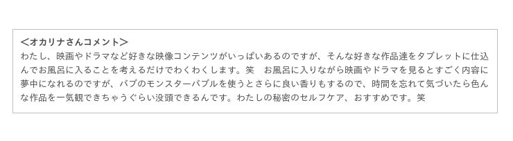 「バブ」では、オフロ時間に音楽や映像を楽しむなど、その人ならではのオフロをもっと面白くする入浴アイデアを取り入れている方々を「入浴クリエイター」と呼んでいます。『バブ MONSTER BUBBLE』は、そんな方々のクリエイティブな入浴シーンに合わせて選べるアイテムとして、3タイプをラインアップいたしました。