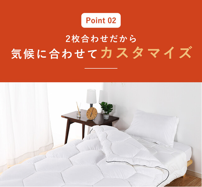 薄い肌掛け布団と通常の厚みの掛け布団が組み合わさっているので一年を通して使用できます。