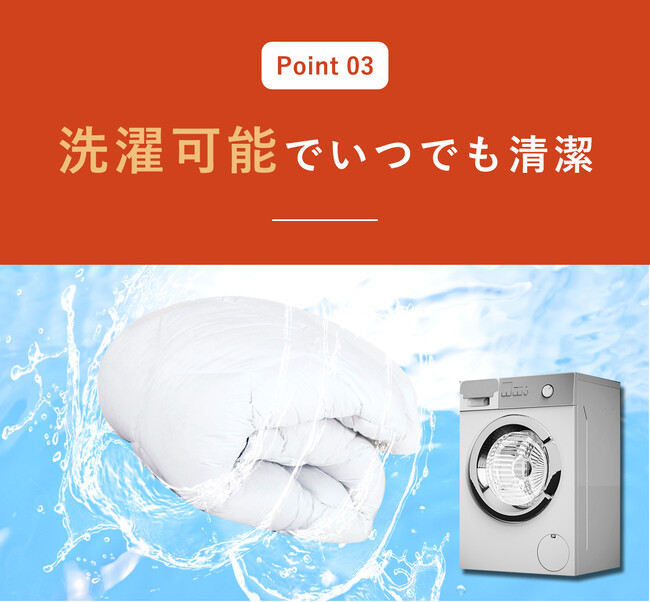 洗濯可能なので1年中清潔!耐久性もあり、5回洗濯しても綿がへたらず型崩れもありません。