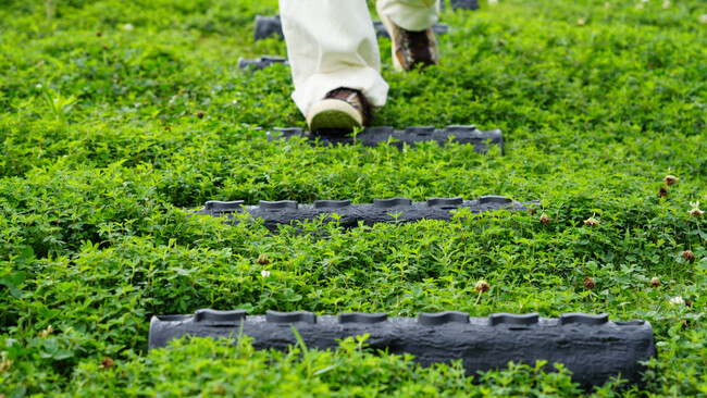 などで需要があり、「より自然の景観に馴染むものを」とのお声があったことから、3年がかりで試行錯誤の末開発。従来からの縦連結はもちろん、横連結も可能にし、より足止まりもデザイン性にも優れた山道DIY階段の開発を行いました。
