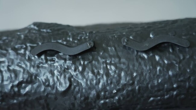 ストッパーになる部分には、シャクトリムシをデザインして遊び心をプラス。効果的な足止まりの良さを可能にしました。