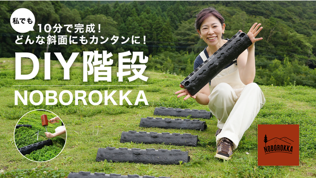 地面を削るなどする事なく、自然の傾斜を活かした山道DIY階段の名前は NOBOROKKA(ノボロッカ)