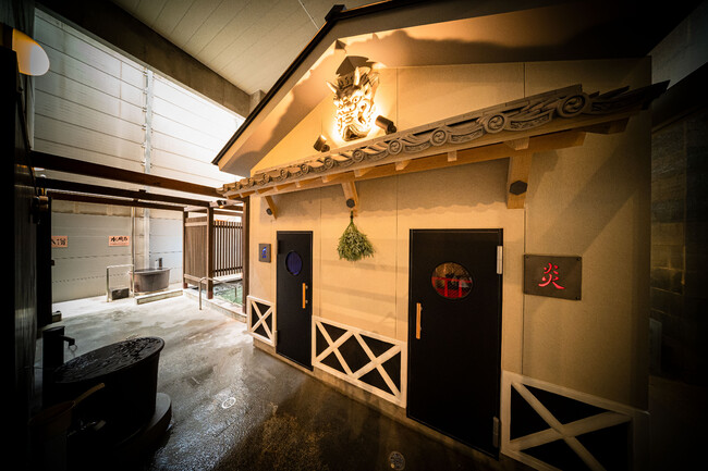 2022年6月11日(土)に男性・露天エリアに、新設された「鬼サウナ」は、入り口に魔除けを兼ねた「菊間瓦」製の“鬼瓦”が設置されており、サウナ小屋の中にも耐熱性に優れた特殊な瓦素材の“鬼丸・鬼玉”のサウナストーンが設置されています。どちらも、「菊間瓦」の窯元・小泉製瓦有限会社が製作。