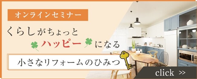 住心オンラインセミナー「くらしがちょっとハッピーになる、小さなリフォームのひみつ」10月25日(火)午前10:30~11:00開催。参加者募集中。お申し込みはhttps://jyushin.info/
