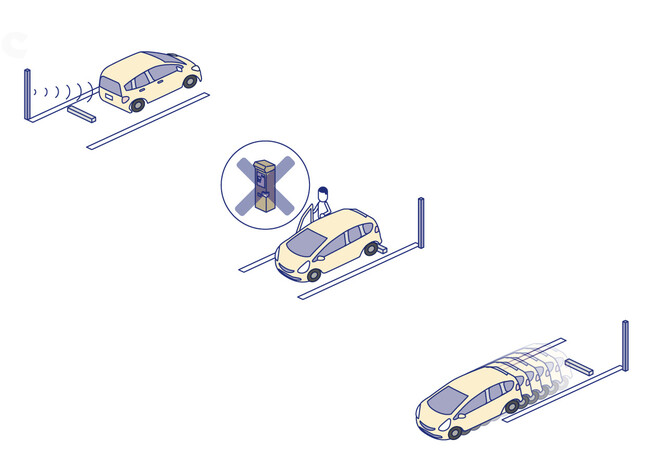AIを用いた入出庫管理とナンバープレート情報の解析により、出庫するだけで精算が完了する”0秒精算”を実現し、ユーザーもオーナーもシンプル化