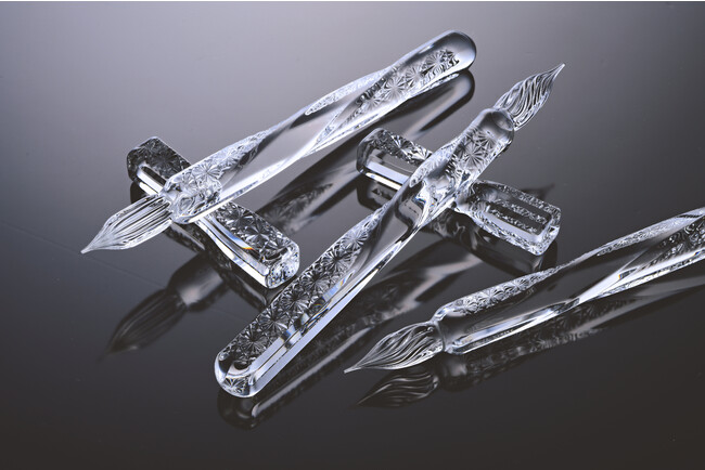 制作については東京都江東区と墨田区に拠点を持つ3社の力を結集。切子加工ができるよう、軸のガラスを成型し研磨する工程を安中特殊硝子製作所が行い、江戸切子の工程を根本硝子工芸(東京都江東区、代表:根本達也)、ペン軸のひねりとペン先の成型溶着を竹内製作所(東京都墨田区、代表取締役:竹内信夫)が担っています。