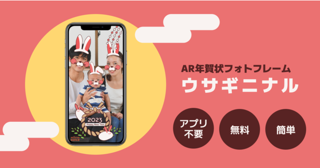 AR年賀状フォトフレーム「ウサギニナル」はアプリのダウンロード不要で、お使いのスマートフォンやタブレット、パソコンでお手軽にフォトフレームを楽しんでいただける無料サービスです。