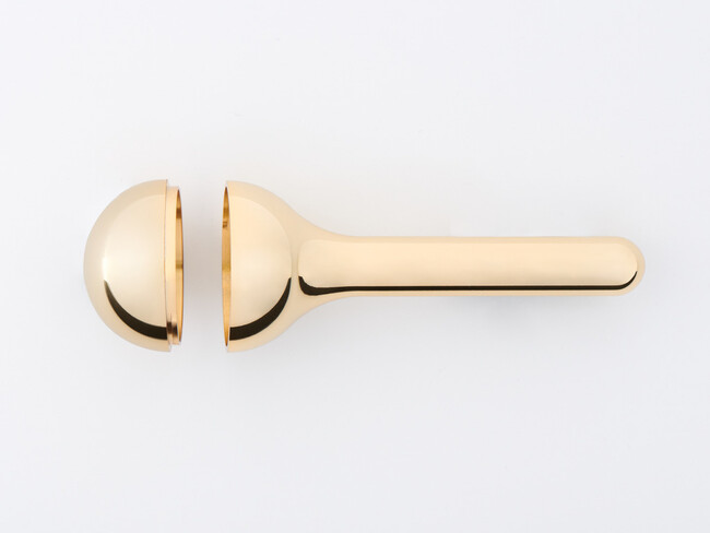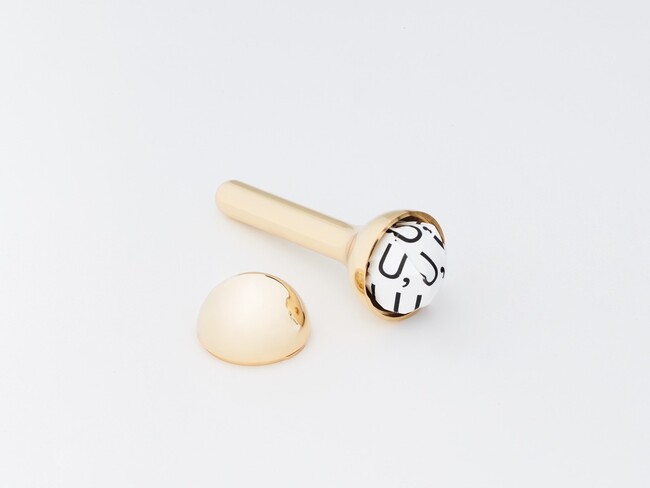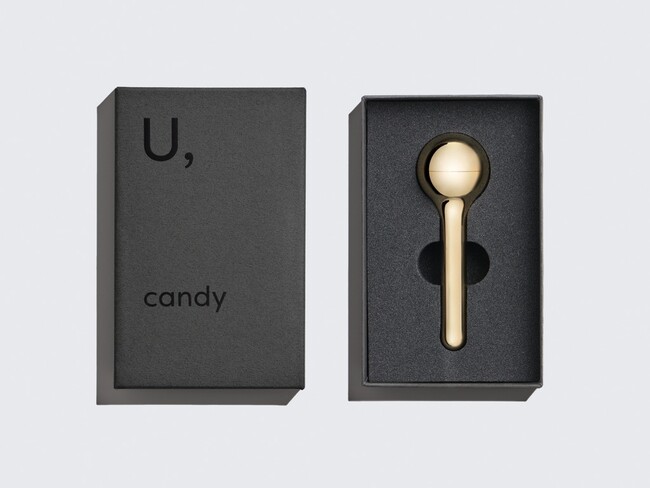 「candy」は、ロリポップタイプキャンディのためのキャンディケース。高岡市伝統産業である仏具製作で培われた高度な仕上技術によって生まれたアイテムは、蓋を開けた時の驚きとフォルムの愛くるしさ、そしてラグジュアリーな輝きを放つ。キャンディに限らず、小さなジュエリーやお花を入れてサプライズをそっとポケットに忍ばせて。贈り物はいつだって、渡す手も受け取る手も胸を高鳴らせ、心踊らせる。