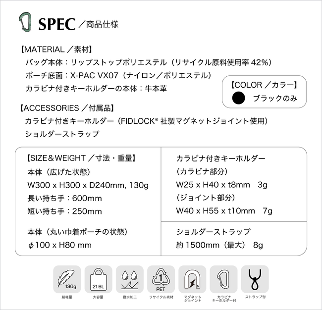 ⚫︎ リサイクル素材/リップストップポリエステル使用