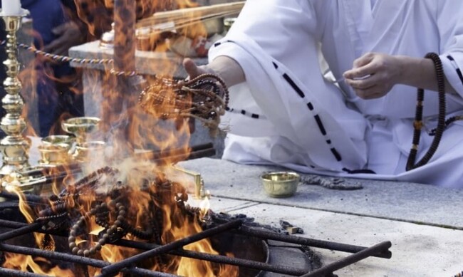 大阿闍梨による“ご祈禱”と“お加持”から、珠数の“お焚き上げ”