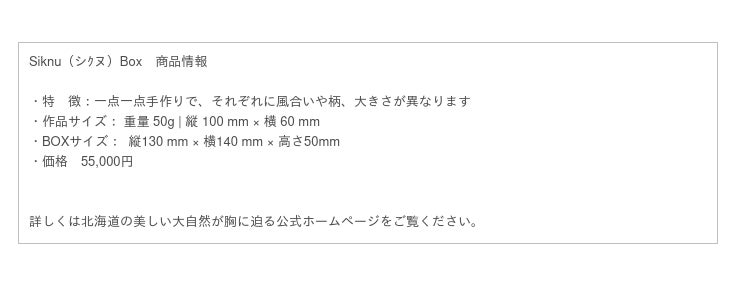 創鹿は、人間の都合で頭数調整されたり厄介者扱いされたりするすべての野性動物、すべての自然存在に対し、敬意と愛情を込め、鹿角作品を創作している。その思いに共感する方々に、Siknu(シクヌ)Boxを届けたい考えだ。