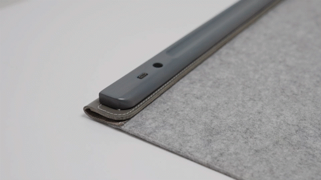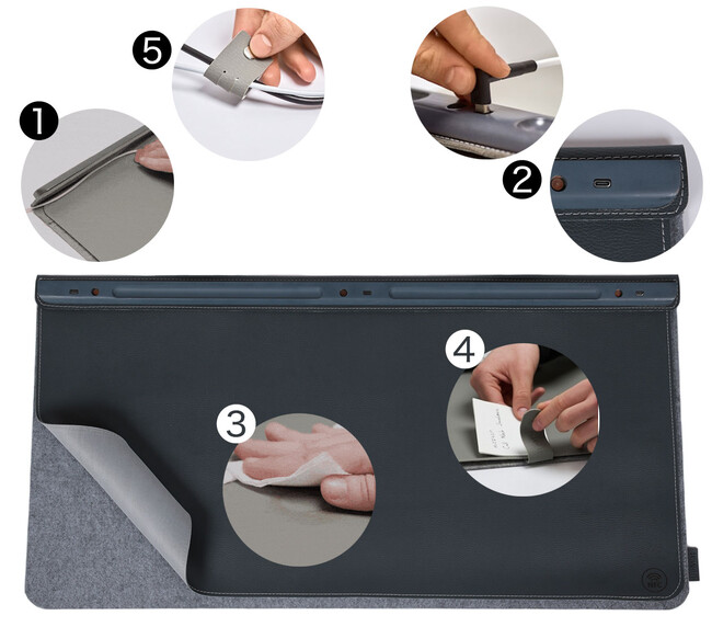 ウール生地のマットが、デスク上でのズレを抑えてくれます。