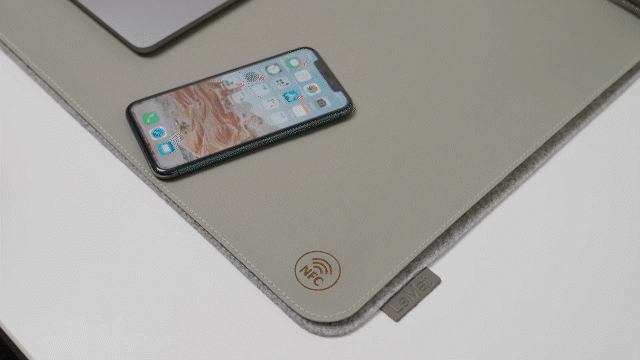 PUレザーマットには、NFCホットスポットが組み込まれています。スマホをピッとタッチすれば、セットされたアプリが自動で開き、ルーティーンにしているスマホアプリ起動可能です。(音楽を聴く、お部屋の電源をON、OFF、アラームを鳴らすなど)