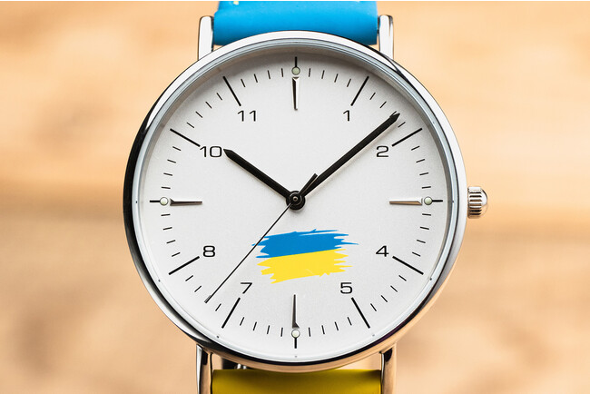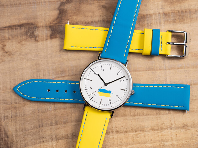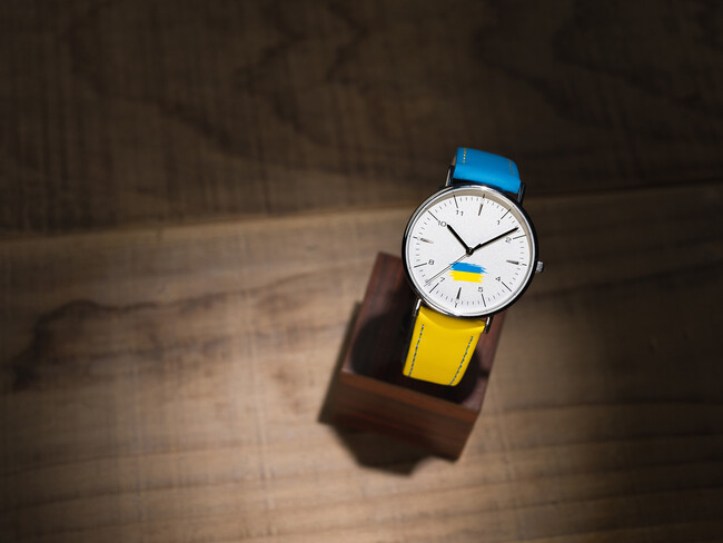 ウクライナ国旗をモチーフにしたシンプルな文字盤デザイン