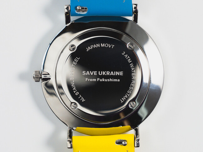 裏蓋に“SAVE UKRAINE From Fukushima”の刻印入り