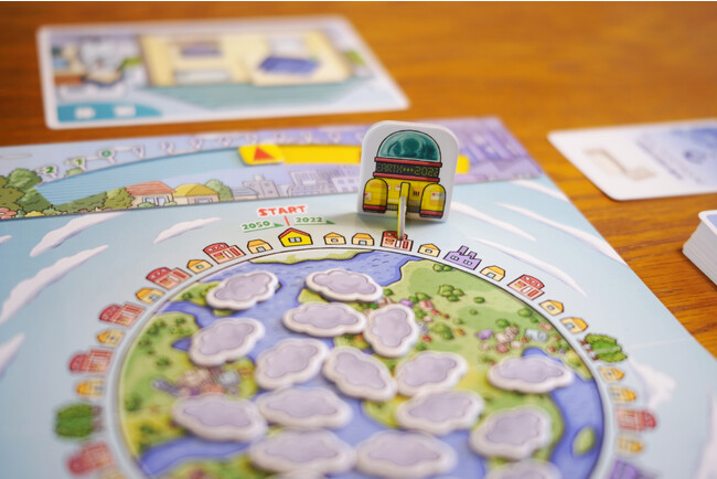 「よりCO2削減出来るアクションを選択する」クイズとすごろくを利用した馴染みやすいルールで、「暮らしの中の脱炭素アクション」を知って考える機会を得ることができるボードゲームです。