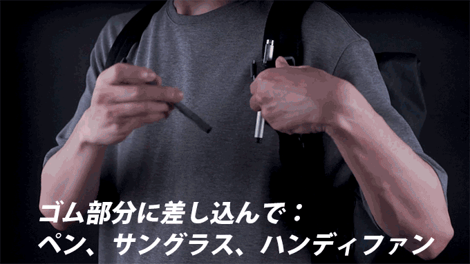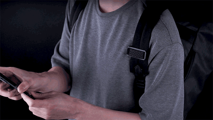 バックパックのストラップに取り付けて、スマホマウントになります。