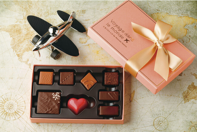 コンセプトは「チョコレートで世界旅行気分を味わう」。世界各国をイメージしたボンボンショコラは、口に含んだ瞬間にあなたを世界旅行に誘います。世界平和への願いも込めた新作ショコラセットです。