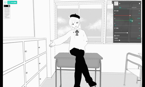 Comicaroidでは絵に必要な素材をインポートし、それらを直感的な操作で変形・配置するだけでコマのイラストを生成することができます。全てがCGで完結するため、イラストレーションの技術は一切必要ありません。