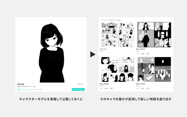 例えば自分のキャラクターモデルを登録して公開しておくと、誰かが起用して新しい物語を創り出してくれるかもしれません。