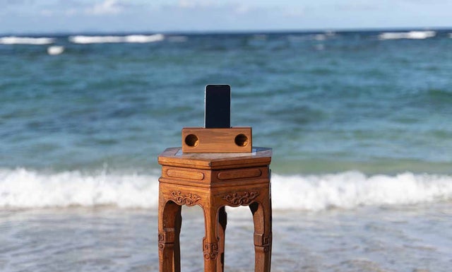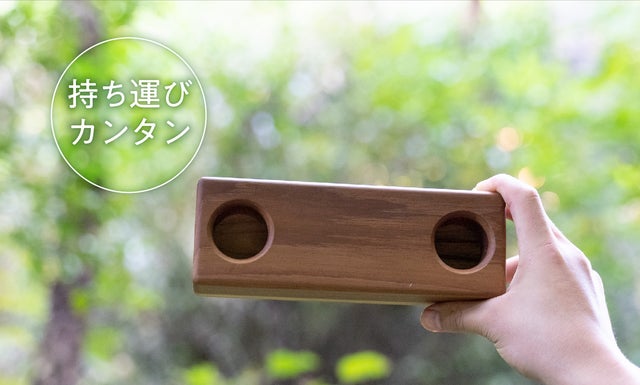 ただスマホを置くだけで、迫力の重低音を楽しむことができます。電源も充電も不要。だから場所を選ばず持ち運びも簡単。いつでもどこでも、音楽をお楽しみいただけます。木筒で反響したサウンドは、デジタルにはない、どこか懐かしさを感じる音色です。