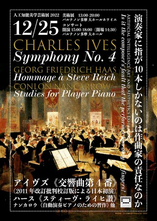 また、人工知能美学芸術研究会(AI美芸研)作曲の《2台ピアノのための四分音ハノン》、《人工知能美学芸術交響曲》が世界初演される。