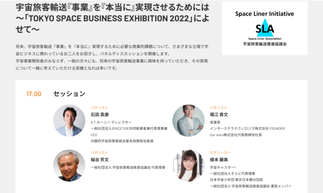 2022年12月14日(水)、東京日本橋室町で行われる、 宇宙ビジネスの最前線に立つ企業・団体が集結する国内最大級の展示会『TOKYO SPACE BUSINESS EXHIBITION 2022』の最後を飾る、SLA主催イベントとしてパネルディスカッションを開催します。