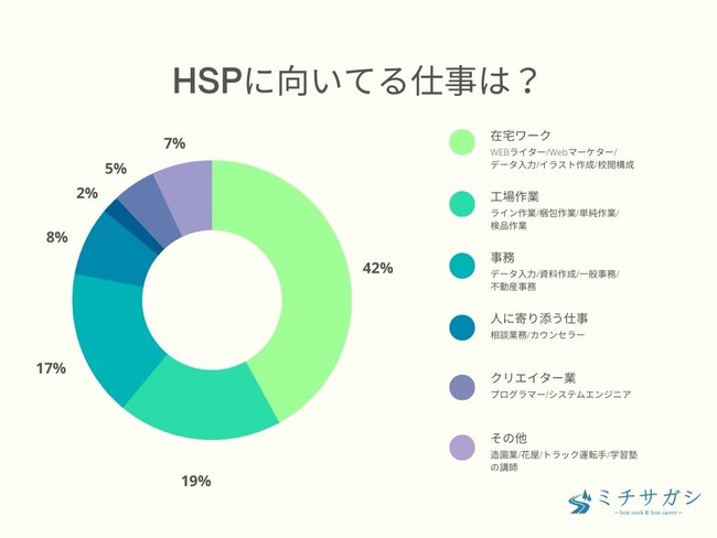 HSPのキャリア・転職メディア、ミチサガシ(https://miyablog.me/)は、HSPで自分に向いてる仕事を見つけた男女100人を対象に「HSPに向いてる仕事」「向いてると感じる理由」「実際に働いている方の感想」についてアンケート調査を実施いたしました。