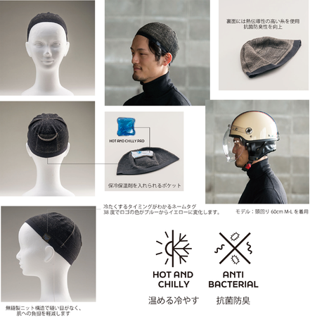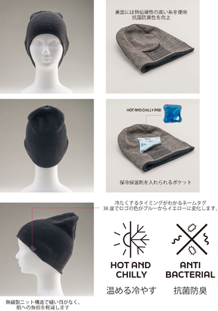 そのなかにHOT AND CHILLYパッドを入れて使用すると、頭を温めるのに役立つインナーキャップです。