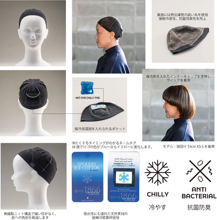 さらに、内側には熱伝導性の良い糸を用い、肌に接する部分にアタッチメントポケットをつけました。そのなかに独自のHOT AND CHILLYパッドを入れて使用すると、頭を冷やすのに役立つインナーキャップです。内側の糸の抗菌防臭効果によりウィッグ内での菌の繁殖を抑えます。(特許出願中)