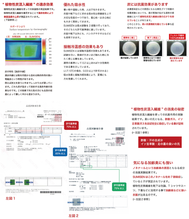 超長綿を高温で炭素化させて、炭の繊維と綿糸を丹念に撚った糸「SUMISEN(R)」を贅沢に使用。炭による自然な遠赤外線効果で血流を促し優しく温まります。