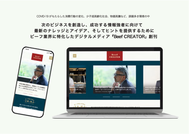 COVID-19 がもたらした消費行動の変化、少子超高齢化社会、物価高騰など、課題多き環境の中、食品業界の中でもとりわけ巨大な牛肉市場で、次のビジネスを創造し、成功する情報強者に向け、最新のナレッジとアイデア、そしてヒントを提供するために、ビーフ業界に特化したデジタルメディアとしてBeef CREATORは創刊されました。