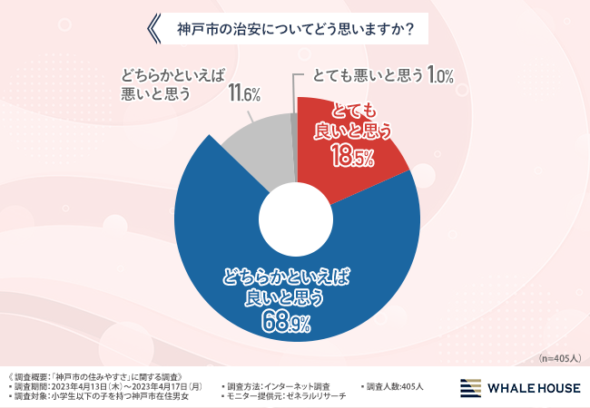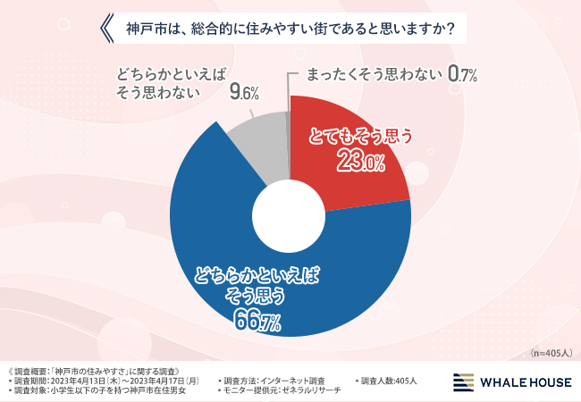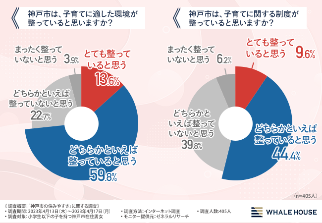 株式会社WHALE HOUSE(本社所在地:兵庫県神戸市、代表取締役:彦坂 達也)は、小学生以下の子を持つ神戸市在住男女を対象に、「神戸市の住みやすさ」に関する調査を実施しました。
