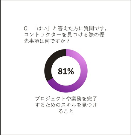派遣社員をはじめとするコントラクターは、従来事務作業などを中心とした、高度ではないタスクを行うための社員として認識されてきました。しかし、この認識も変わりつつあります。調査に参加したSTEM企業の81%が、コントラクターを活用する際の優先事項として「プロジェクトやタスクを完了するために必要なスキルの確保」を挙げており、単なる人手の確保ではなく、特定のスキルを求めてコントラクターを活用している企業が多いことが見て取れます。