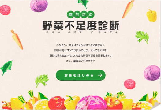 8つの質問に順番に答えていくことで、野菜不足度がわかります。