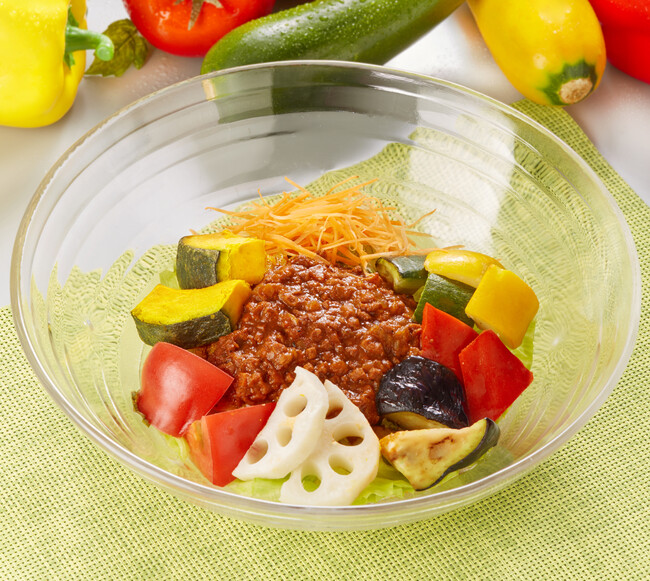 「野菜をとろうキャンペーン」を受け、カゴメ株式会社名古屋支店の協力のもと、1食に2/3日分の野菜を使用した「プラントベースのカレーまぜ麺」を期間限定で販売いたします(一部店舗を除く)。