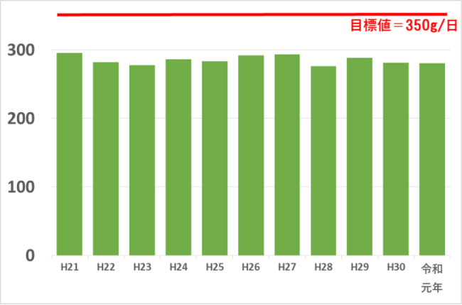 国が推奨する、大人1日あたりの野菜摂取目標量は350g。