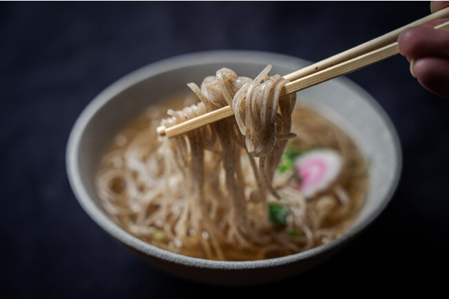 お蕎麦は、北海道産石臼挽きのそば粉を使用し、和風出汁に合うように開発された生麺を使用。和風出汁は、鹿児島県産の鰹節や北海道産の利尻昆布など国産にこだわった材料を数種類混ぜ合わせて、店内でいちからじっくりと時間を掛けて、香り立つ旨味たっぷりの関西風に仕上げました。