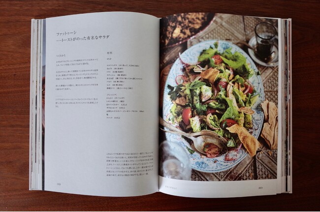 各章に挿入されているエッセイや、レシピに添えられたコメントやエピソードを読み、美しい料理写真やダマスカスの日常を捉えた写真を見ていると、スパイスの香りと共にシリアの暮らしが浮かびあがってきます。料理が好きな人にとって新鮮なレシピ集であることはもちろん、写真集でもあり読み物としても楽しめるオールカラーの上製本は、コーヒーテーブルブックとしても美しい一冊です。シリアに興味を持っても旅人として訪れることは難しい現状のなか、この本のレシピを通してシリアを体験し、身近に感じ、シリアの人々とつながることができるのです。