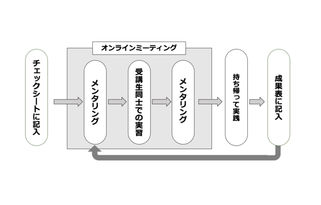 受講者はすぐに役立つ「聴くときのクセ: チェックシート」と面談で自分のクセを自覚。新しいスキルを覚えるよりも先にクセの修正に注力します。