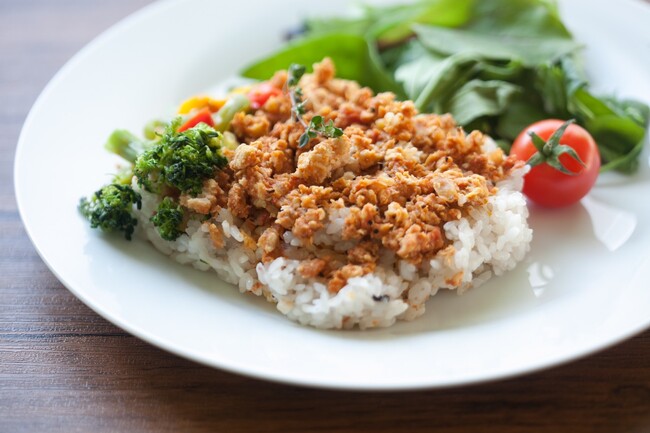 減量中にも楽しめるカレー。しっかりした味付けと、白米も摂れる完全食。減量中のストレスを解消してくれること間違いなし。