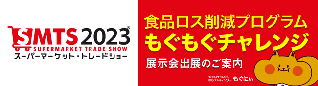 2019年よりスタートしたスーパーマーケット向け食品ロス削減プログラム「もぐもぐチャレンジ」は、2022年12月までに実施店舗が全国291店舗まで拡大し、多くのスーパーマーケットにおける食品ロスの削減に貢献してまいりました。今回のトレードショーでは、本年より本格的に全国拡大を見据えた「もぐもぐチャレンジ」の仕組みや展開状況、実際に導入をご検討いただくためのプランなどをご紹介いたします。食品ロスを減らして利益率の改善を図りたい、SDGsについて取り組みを広げたい、とお考えの事業者の方は、是非この機会に弊社ブースへお立ち寄りください。
