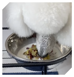 そこで、わたしたちは、フード、サプリメント、おやつの見直しを行いました。肉、魚、野菜選びからはじまり、調理の仕方、組み合わせなど、試行錯誤を繰り返します。ボーンブロスも取り入れ、手作り食にして半年が経った頃、千の症状は大きな改善を見せたのです。まいにちの食べ物が健康に大きく影響していることを実感した瞬間でした。
