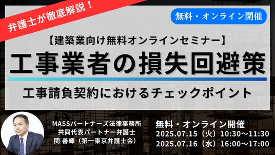 この度、「『工事業者の損失回避策』工事請負契約におけるチェックポイント」と題して、建築業者の皆様向けにセミナーを開催させていただきます。
