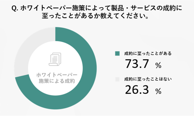 なんと73.7%の企業が、ホワイトペーパー施策によって製品・サービスの成約に至ったことがあると回答。