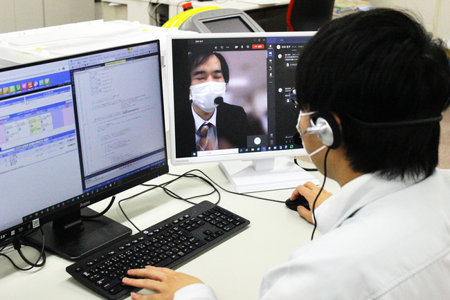 部門内で拠点が異なっていても、下図の写真のようにWeb会議やグループウェアシステムを利用してマネジメント行い、人員の配置も容易にする取り組みを行っています。