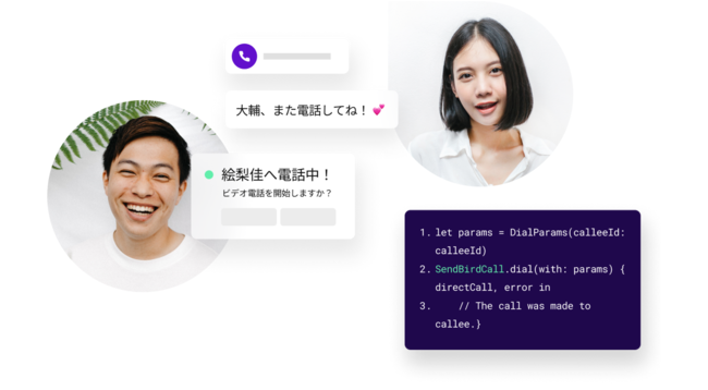 アプリに高品質な音声通話やビデオ通話を簡単に追加できます。1対1の通話に加えて、グループ通話も可能です。