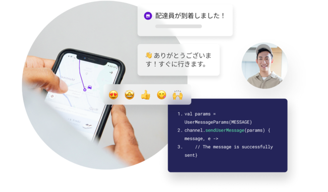 Sendbirdは、リアルタイムチャット、音声通話、ビデオ通話機能をWebアプリ・ネイティブアプリ問わず、アプリ内に実装することができるAPI、SDK、UIキットを提供しています。世界的な企業のアプリで採用されており、ゲームのNEXONや配送のDHL、デリバリーのDoorDash、質問ポータルのRedditなどのコミュニケーション機能を提供しています。現在、顧客企業数は1,200社を越え、月間アクティブユーザーは3億人、月間処理メッセージ量は70億件を誇ります。