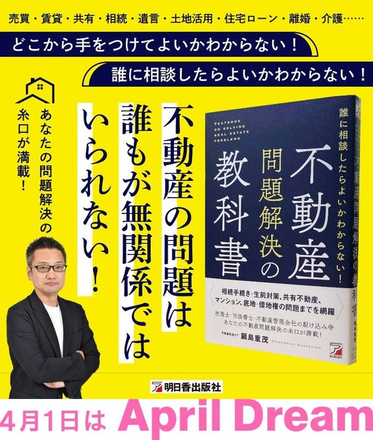 そのような方を一人でも少なくするため、自分だけが悩んでいるわけではないと感じていただくため、事例をまとめた書籍(誰に相談してよいかわからない! 不動産問題解決の教科書、明日香出版社)を出版しました。
