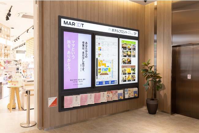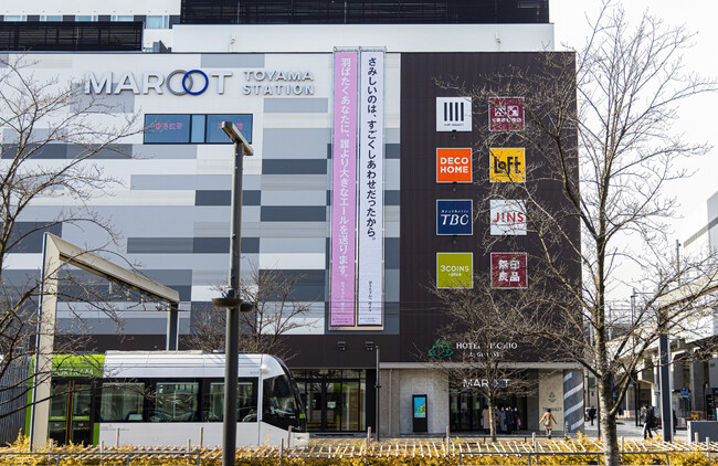■メッセージ掲出場所:商業施設「MAROOT(マルート)」の外壁懸垂幕・フラッグ・エレベーター脇デジタルサイネージ・等、JR富山駅構内・商業施設「とやマルシェ」・商業施設「マリエとやま」デジタルサイネージ。